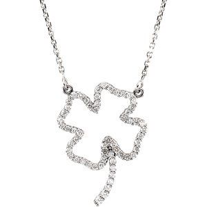67073 / 14K White / 1/4 Ctw Diamond Four Leaf Clover Necklace
