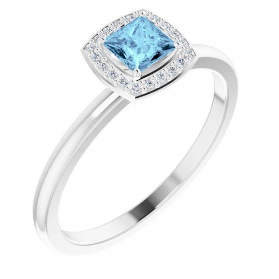 122745 / Set / 14K White / Aquamarine / Polished / Genuine Aquamarine And .05 Ctw Diamond Ring