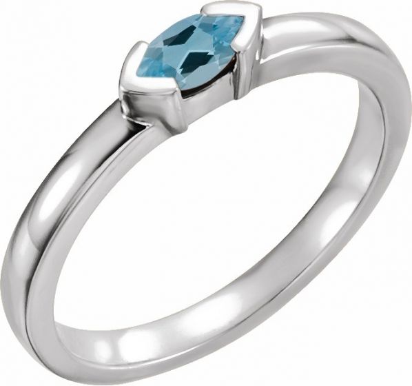 14K White Aquamarine Marquise Stackable Family Ring