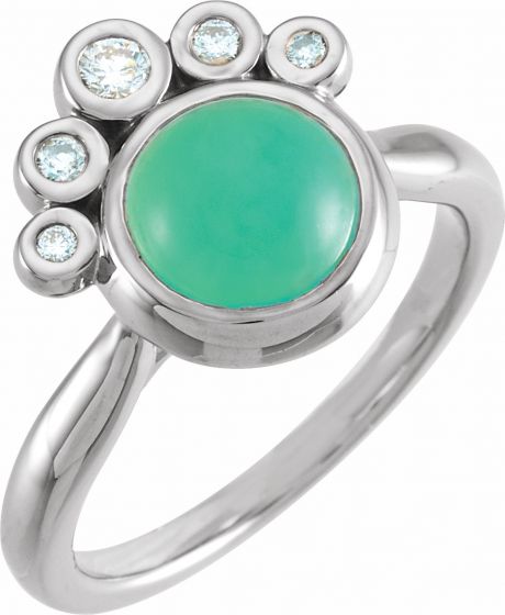 14K White Chrysoprase & 1/8 CTW Diamond Ring