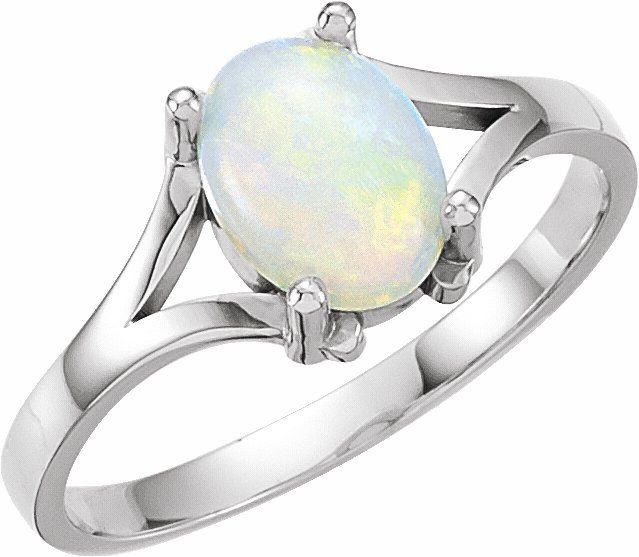7653 / 14K White / Set / Opal / 08.00X06.00 Mm / Polished / Cabochon Ring