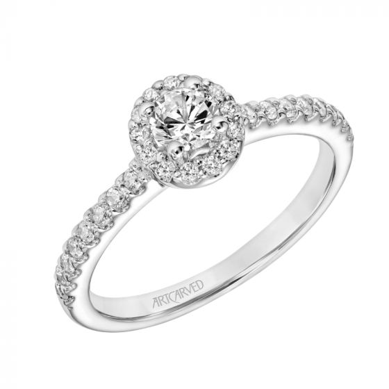 Artcarved Bridal Mounted Mined Live Center Classic One Love Halo Engagement Ring Layla 18K White Gold