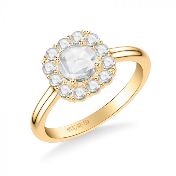 Artcarved Bridal Mounted Mined Live Center Classic Rose Goldcut Halo Engagement Ring Irma 18K Yellow Gold