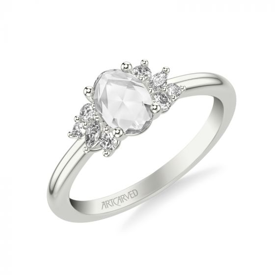 Contemporary Rose Cut Oval Diamond Engagement Ring With Diamond Cluster Accents