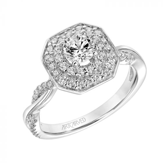 Artcarved Bridal Mounted Mined Live Center Contemporary One Love Engagement Ring Chantal 14K White Gold