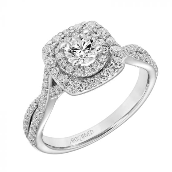 Artcarved Bridal Mounted Mined Live Center Contemporary One Love Halo Engagement Ring Kendra 14K White Gold