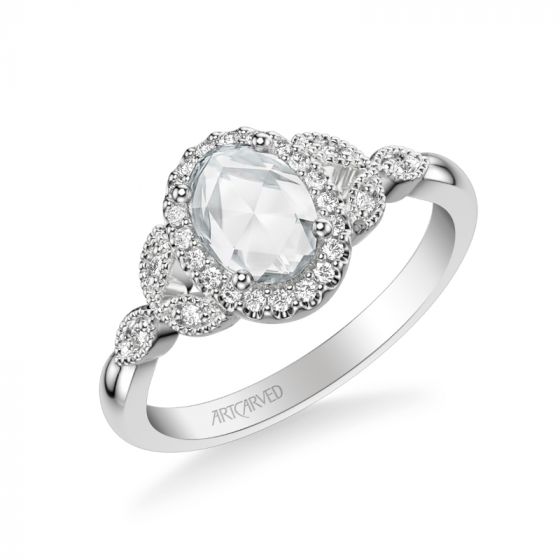 Artcarved Bridal Mounted Mined Live Center Contemporary Rose Goldcut Halo Engagement Ring 18K White Gold