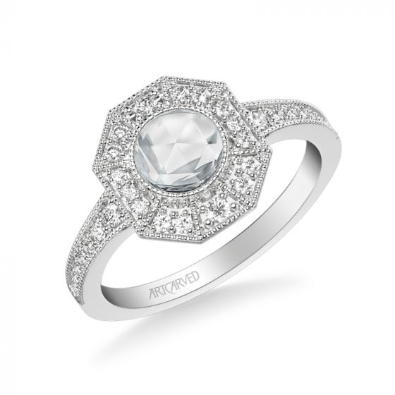 Artcarved Bridal Mounted Mined Live Center Vintage Rose Goldcut Halo Engagement Ring Ornella 14K White Gold