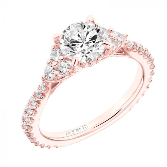 Artcarved Bridal Mounted with CZ Center Classic 3-Stone Engagement Ring Clio 14K Rose Gold