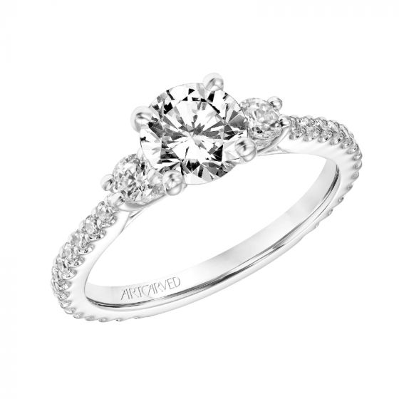 Artcarved Bridal Mounted with CZ Center Classic 3-Stone Engagement Ring Jill 14K White Gold