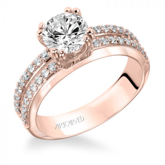 Artcarved Bridal Mounted with CZ Center Classic Engagement Ring Jade 14K White Gold Primary & 14K Rose Gold