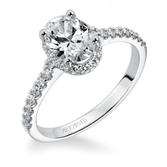 Artcarved Bridal Mounted with CZ Center Classic Halo Engagement Ring Kate 14K White Gold