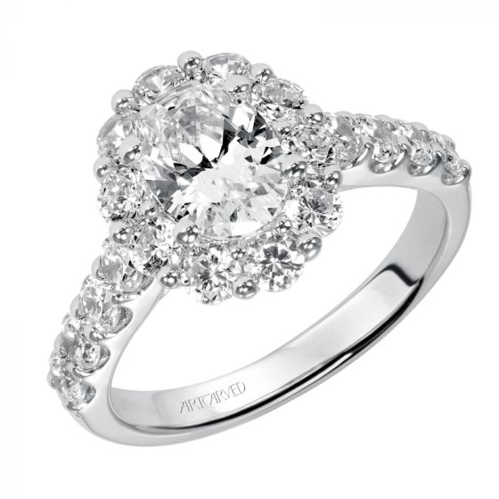 Artcarved Bridal Mounted with CZ Center Classic Halo Engagement Ring Wynona 14K White Gold