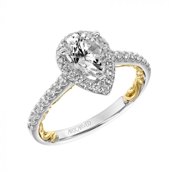 Artcarved Bridal Mounted with CZ Center Classic Lyric Halo Engagement Ring Delaney 14K White Gold Primary & 14K Yellow Gold