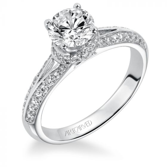 Artcarved Bridal Mounted with CZ Center Contemporary Engagement Ring Charly 14K White Gold