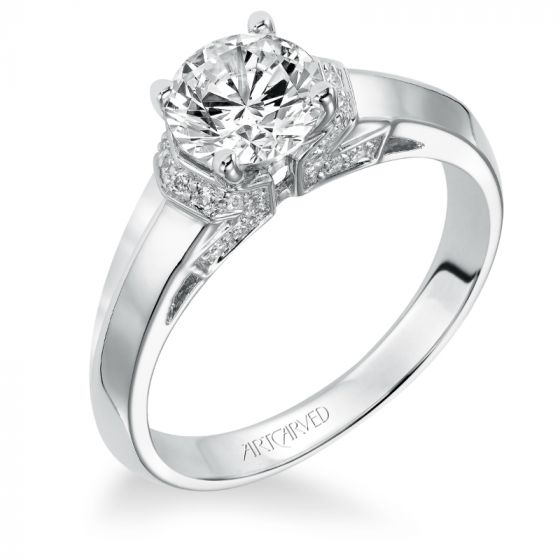 Artcarved Bridal Mounted with CZ Center Contemporary Engagement Ring Greta 14K White Gold