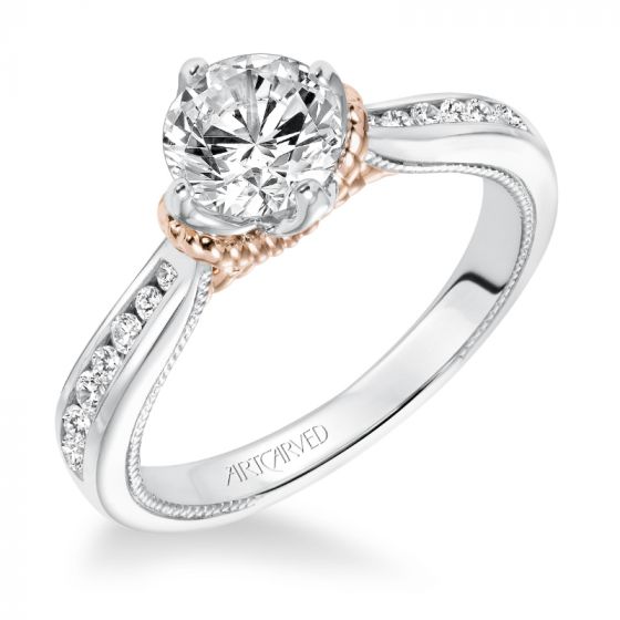 Artcarved Bridal Mounted with CZ Center Contemporary Engagement Ring Posey 14K White Gold Primary & 14K Rose Gold