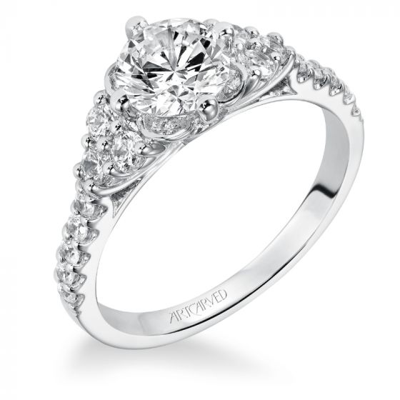 Diamond Engagement Ring Featuring An Exclusive Artcarved Setting With Diamond Clusters On Each Side And Pave Shank