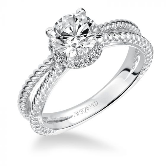 Artcarved Bridal Mounted with CZ Center Contemporary Twist Halo Engagement Ring Serina 14K White Gold