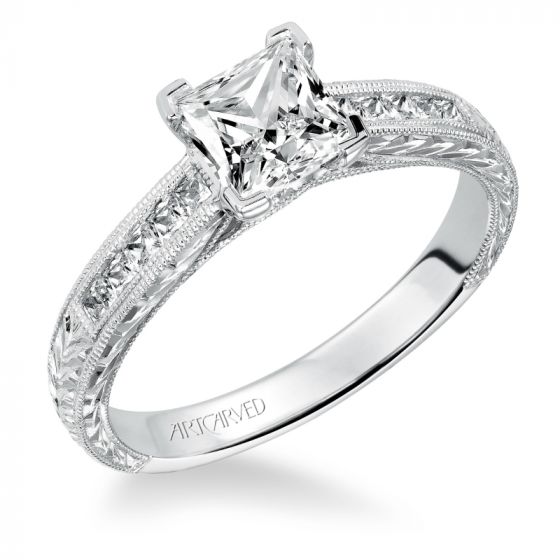 Channel Set Hand Engraved With Milgrain Engagement Ring