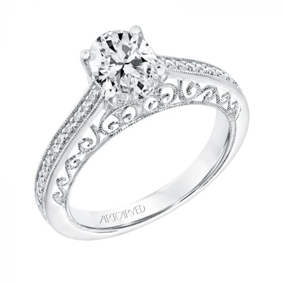 Artcarved Bridal Mounted with CZ Center Vintage Filigree Diamond Engagement Ring Ramona 14K White Gold