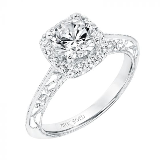 Artcarved Bridal Mounted with CZ Center Vintage Heritage Engagement Ring Audriana 14K White Gold