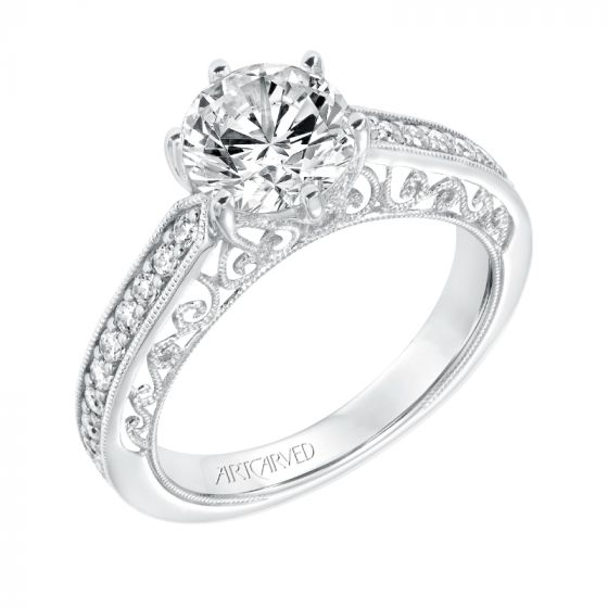 Artcarved Bridal Mounted with CZ Center Vintage Heritage Engagement Ring Cossette 14K White Gold