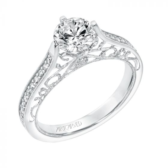 Artcarved Bridal Mounted with CZ Center Vintage Heritage Engagement Ring Juliana 14K White Gold