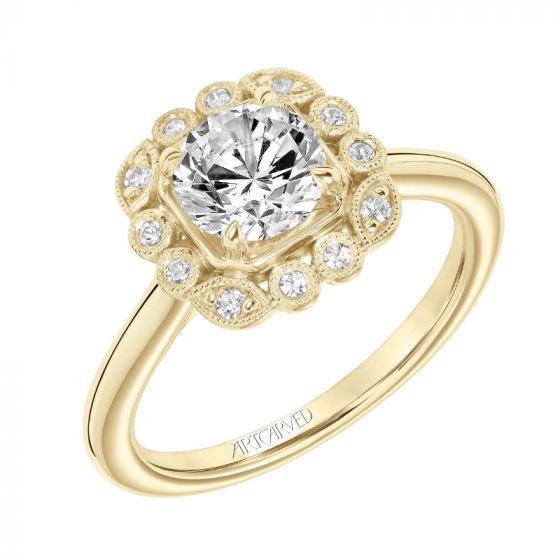 Artcarved Bridal Mounted with CZ Center Vintage Vintage Halo Engagement Ring Mabel 18K Yellow Gold