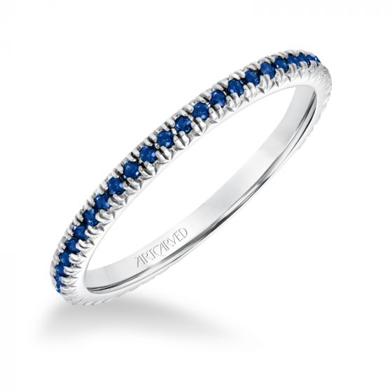 Artcarved Bridal Mounted with Side Stones Contemporary Stackable Eternity Anniversary Band 14K White Gold & Blue Sapphire