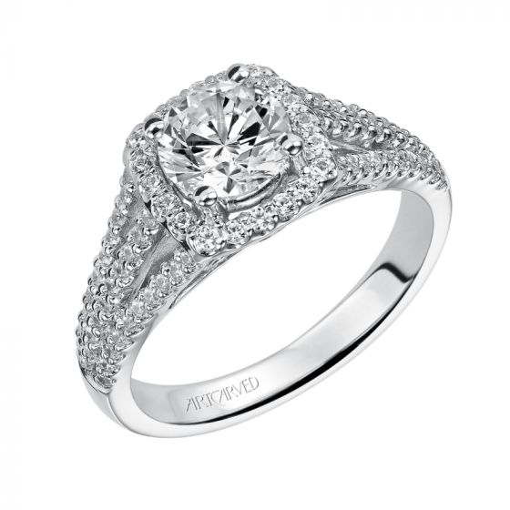 Artcarved Bridal Semi-Mounted with Side Stones Classic Halo Engagement Ring Ava 14K White Gold