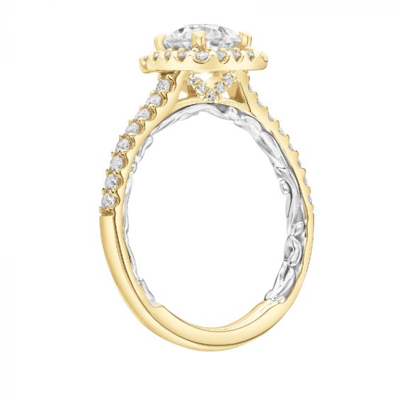 Artcarved Bridal Semi-Mounted with Side Stones Classic Lyric Halo Engagement Ring Mellie 18K Yellow Gold Primary & White Gold