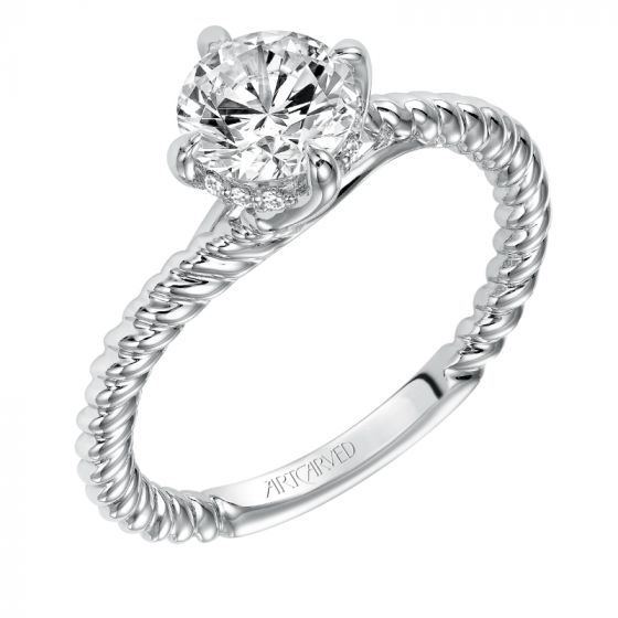 Artcarved Bridal Semi-Mounted with Side Stones Contemporary Americana Solitaire Engagement Ring Aline 14K White Gold