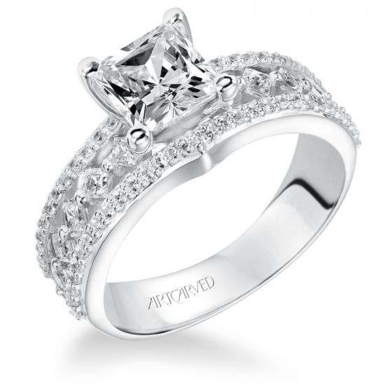 Artcarved Bridal Semi-Mounted with Side Stones Contemporary Diamond Engagement Ring Lauren 14K White Gold