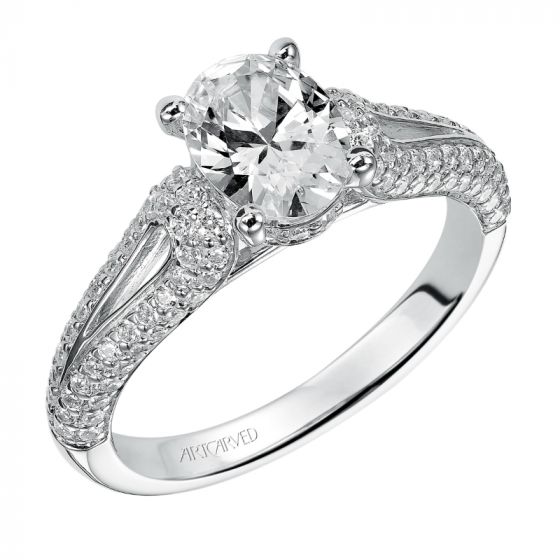 Oval Engagement Ring With Pave Set Diamond Split Band