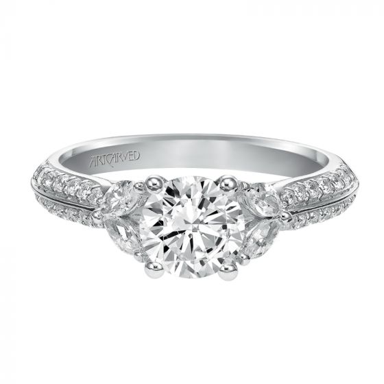 Artcarved Bridal Semi-Mounted with Side Stones Contemporary Engagement Ring Loretta 14K White Gold