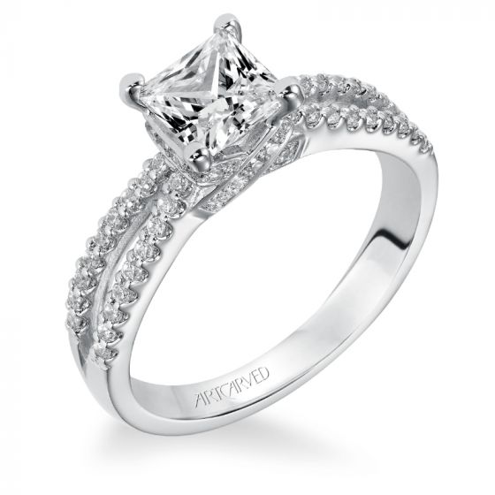 Artcarved Bridal Semi-Mounted with Side Stones Contemporary Engagement Ring Melanie 14K White Gold