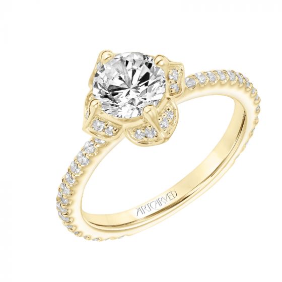 Artcarved Bridal Semi-Mounted with Side Stones Contemporary Floral Engagement Ring Lotus 18K Yellow Gold