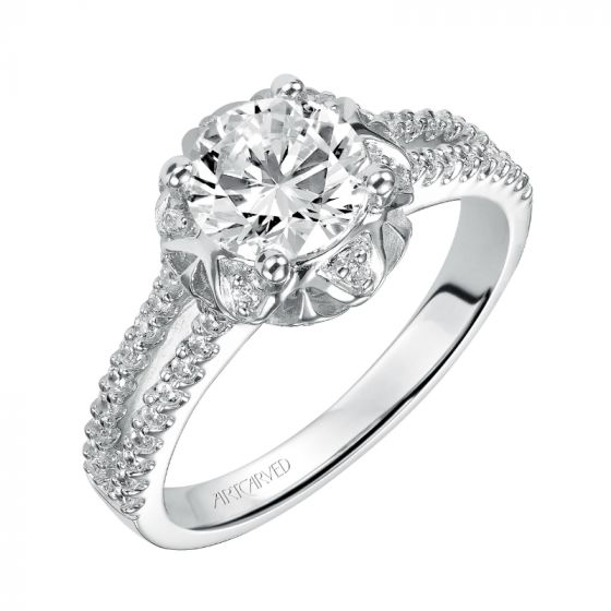 Artcarved Bridal Semi-Mounted with Side Stones Contemporary Halo Engagement Ring Camille 14K White Gold