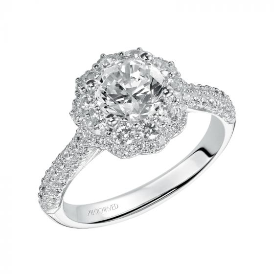 Artcarved Bridal Semi-Mounted with Side Stones Contemporary Halo Engagement Ring Tabitha 14K White Gold