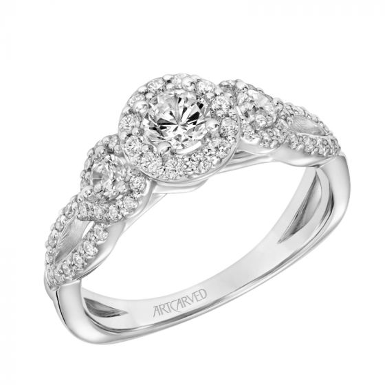 Artcarved Bridal Semi-Mounted with Side Stones Contemporary One Love Halo Engagement Ring 14K White Gold