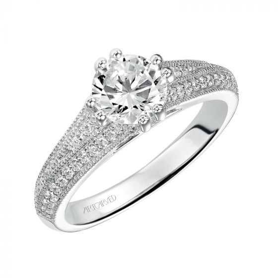 Artcarved Bridal Semi-Mounted with Side Stones Vintage Engagement Ring Agnes 14K White Gold