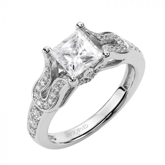 Artcarved Bridal Semi-Mounted with Side Stones Vintage Engagement Ring Candance 14K White Gold