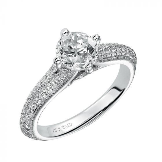 Artcarved Bridal Semi-Mounted with Side Stones Vintage Engagement Ring Jeanette 14K White Gold