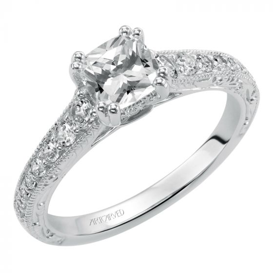 Artcarved Bridal Semi-Mounted with Side Stones Vintage Engraved Diamond Engagement Ring Jada 14K White Gold