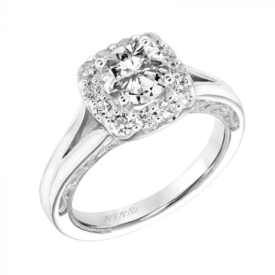 Artcarved Bridal Semi-Mounted with Side Stones Vintage Filigree Halo Engagement Ring Katherine 14K White Gold
