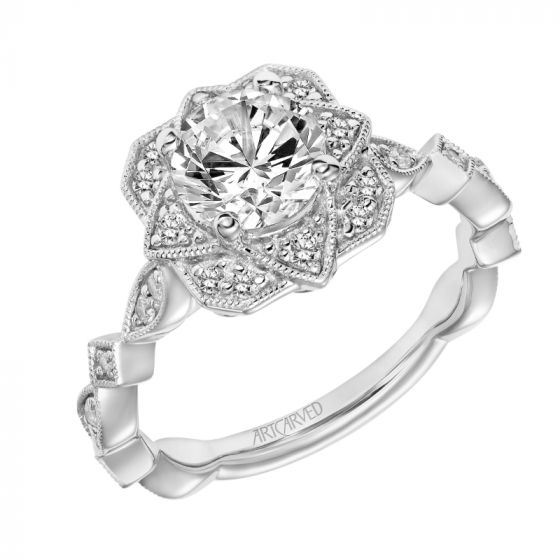 Artcarved Bridal Semi-Mounted with Side Stones Vintage Milgrain Engagement Ring Carol 14K White Gold