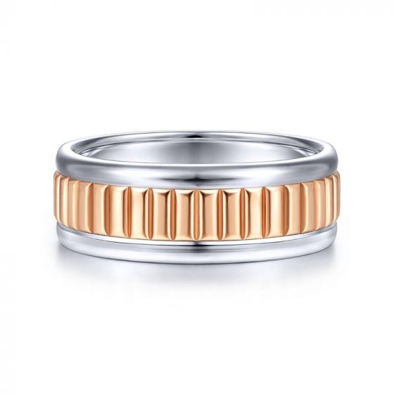 Atop a polished 14K white gold band, diamond-cut 14K rose gold ridges provide out of this world color and texture. Choose a two-tone wedding ring for him thats as one-of-a-kind as the love you share.