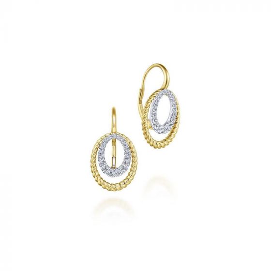 14k Yellow & White Gold Twisted Oval Diamond Drop Earrings