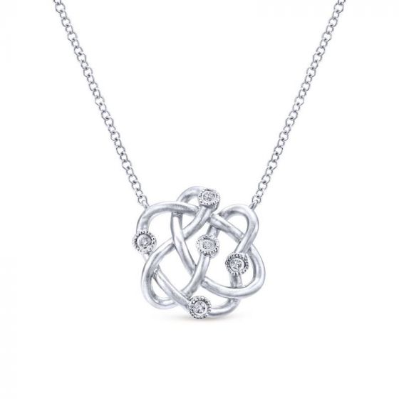 925 Sterling Silver Twisted Knot Diamond Pendant Necklace
